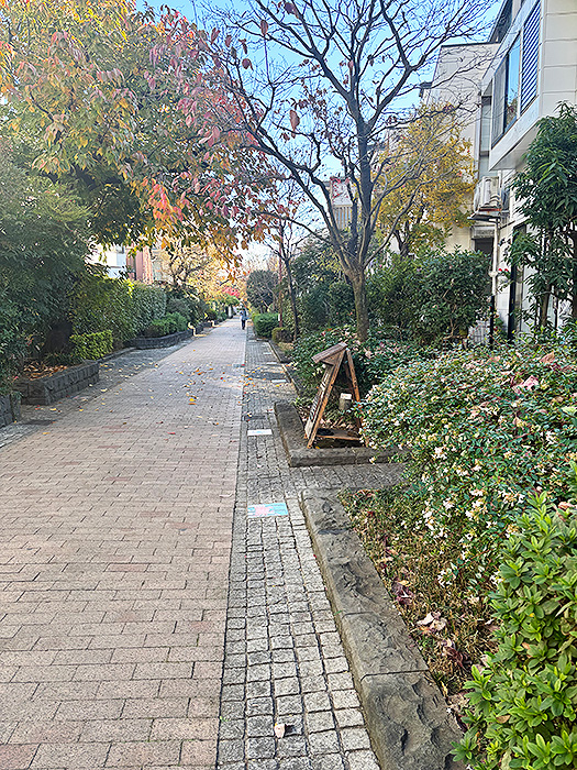 マルコポッチ前の緑道の落ち葉も毎日段々と増えてきて、それぞれの木の下にはそれぞれの落ち葉の色の違いがあり、とても綺麗です。