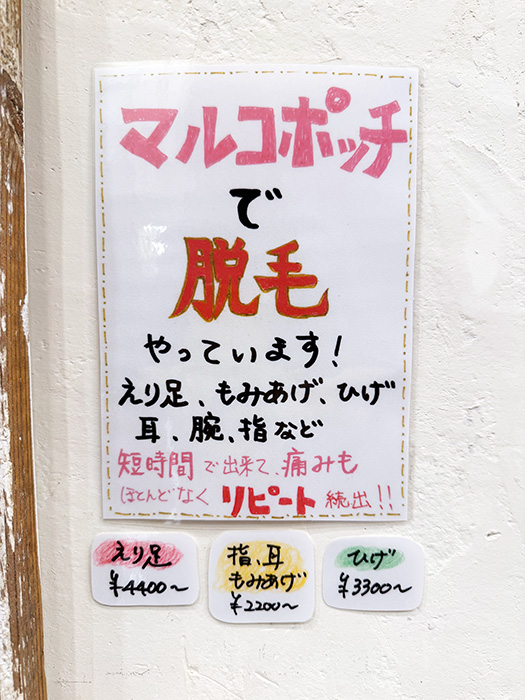 うなじだけでなくもみあげ、ひげ、指毛などポイントでも脱毛可能です!
